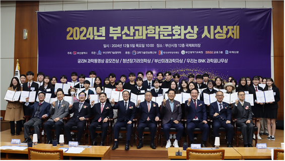 <제 20회 부산미래과학자상을 포함한 2024년 부산과학문화상 시상제 단체사진>