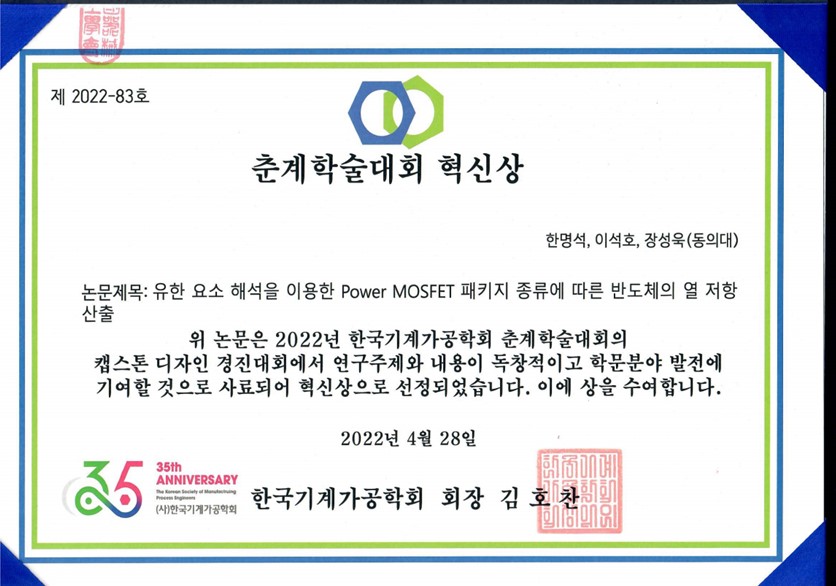 - 2022년 4월 한국기계가공학회 춘계학술대회 참여