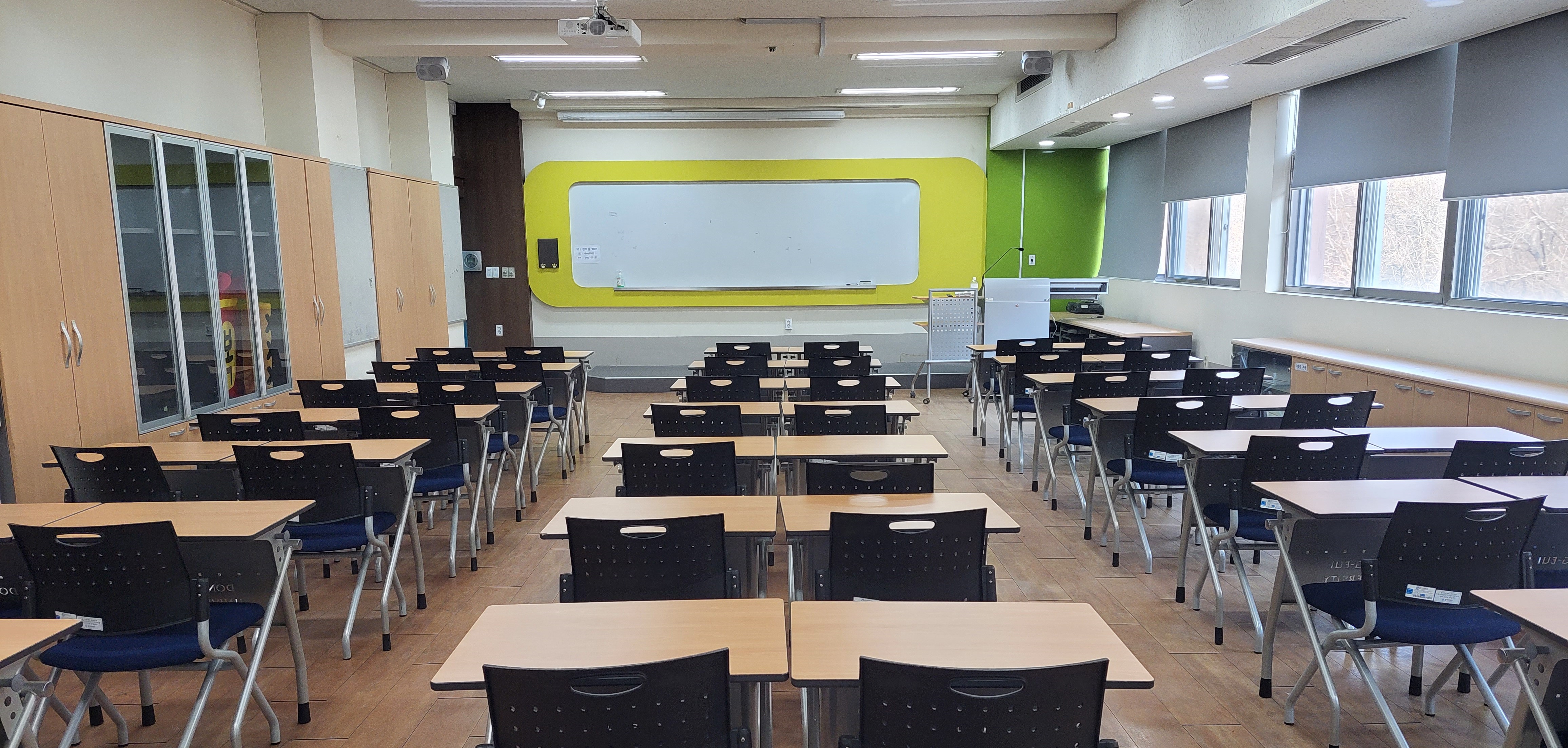 미러링 장치와 무선 AP, 전자교탁과 빔프로젝트 등의 스마트 여건을 갖춘 강의실로 수업의 과정과 결과를 디지털 기기로 공유하고 즉각적인 피드백이 가능한 강의실입니다. 학습자 중심의 교육과 최신 미디어 기술들을 체험하는 등 미래사회 디지털 문해력을 키우는 공간입니다.