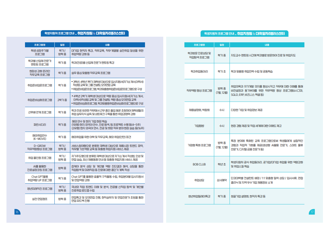 학생지원처 취업지원팀에서는 재학생들에게 취업과 관련된 다양한 교내 프로그램에 대한 정보를 제공하기 위해