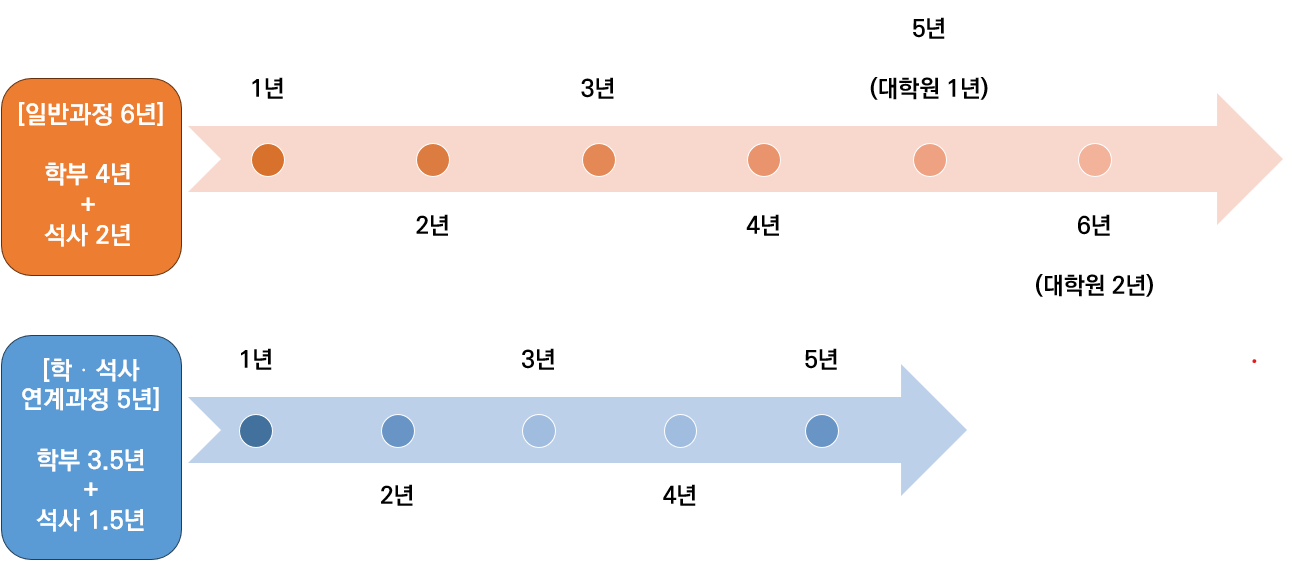 • 학사학위과정과 석사학위과정을 연계하여 학사과정을 3.5년(7개 학기), 석사과정을 1.5년(3개 학기)에 이수하는 과정