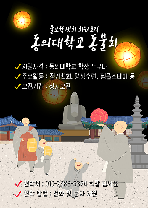 • 경찰행정학과 동불회는 즐겁고 뜻깊은 활동을 통해 불교 동아리만의 특별한 추억을 만들어 갑니다.