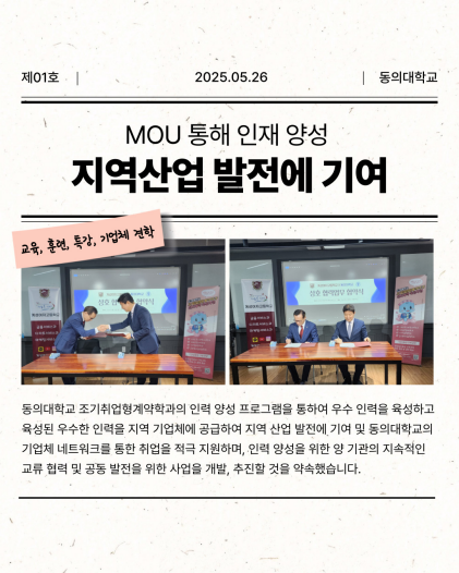 동의대학교 조기취업형계약학과의 인력 양성 프로그램을 통하여 우수 인력을 육성하고 육성된 우수한 인력을 지역 기업체에 공급하여 지역 산업 발전에 기여 ❗