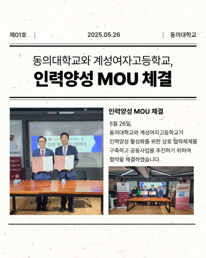동의대학교와 계성여자고등학교가 인력 양성 활성화를 위한 MOU를 체결하였습니다🙌