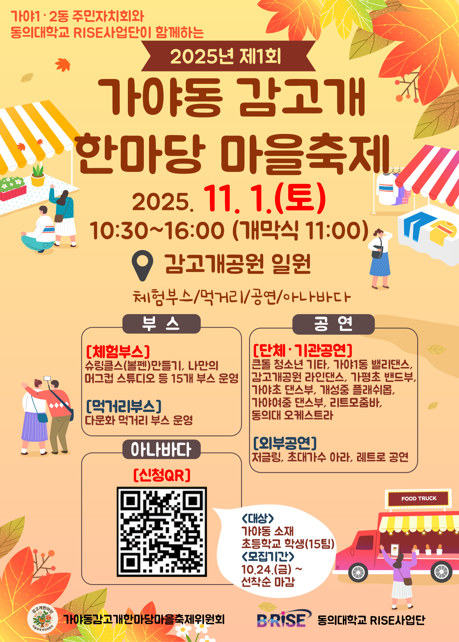 2025년 제 1회 가야동 감고개 한마당 마을축제가 11월 1일에 개최됩니다.