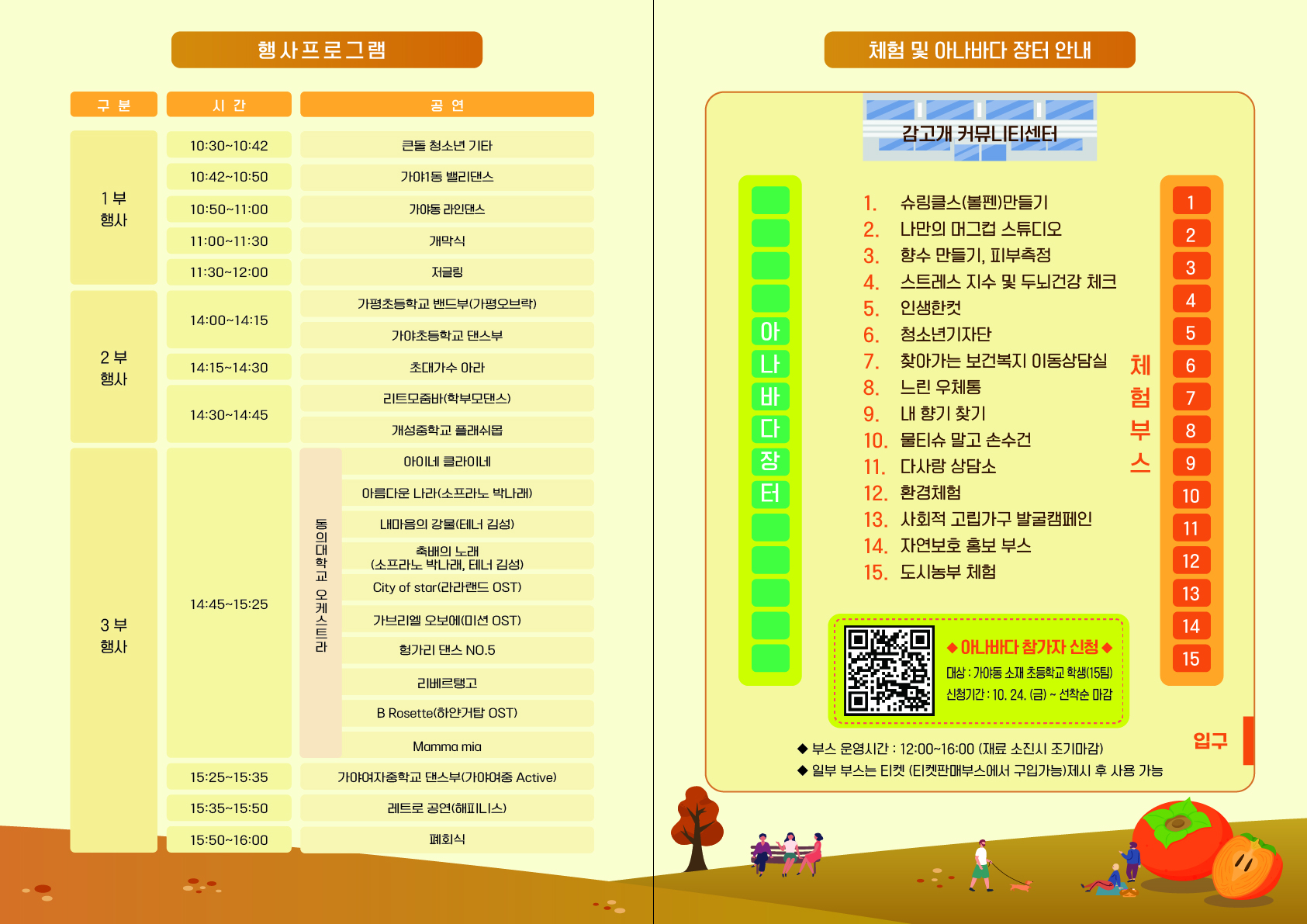 다양한 체험부스존과 공연을 운영하오니 많은 관심과 참여 부탁드립니다.