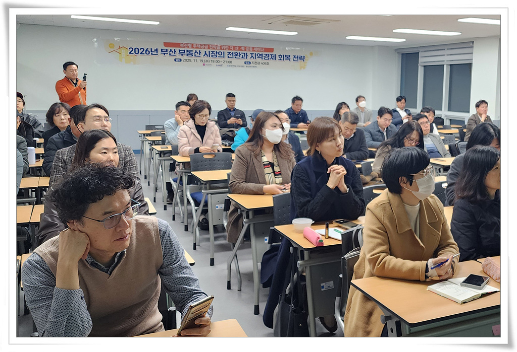 부동산대학원(원장 정쾌호)은 지난 19일 동의대 지천관에서 ‘2026년 부산 부동산 시장의 전환과 지역경제 회복 전략’을 주제로 대학원생과 시민 등이 참여한 세미나를 개최했다.